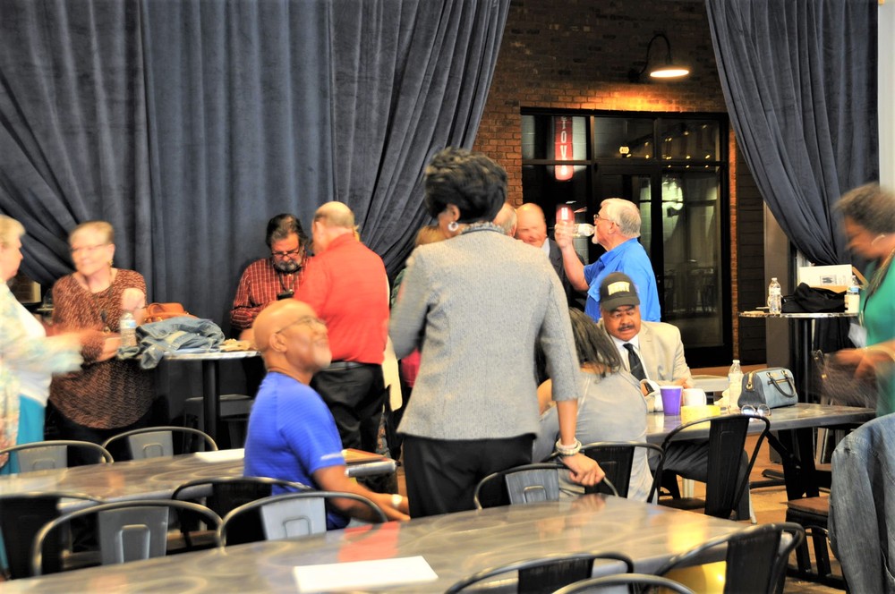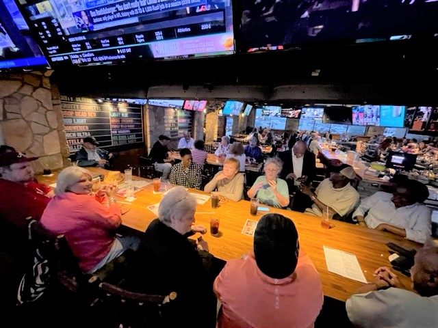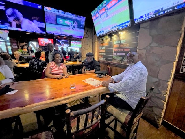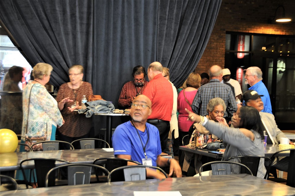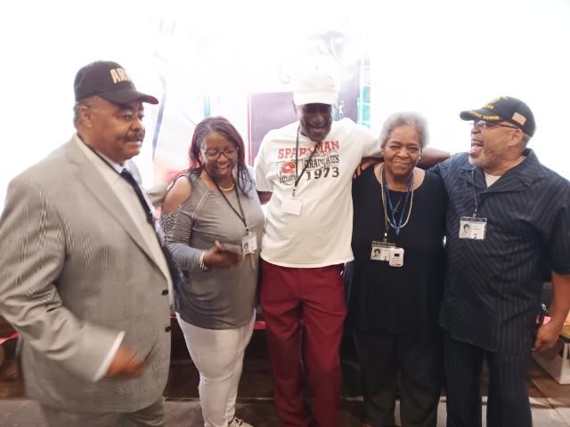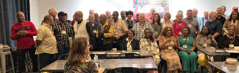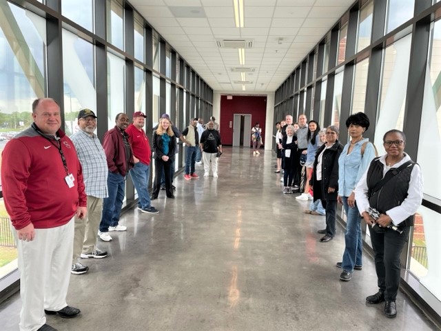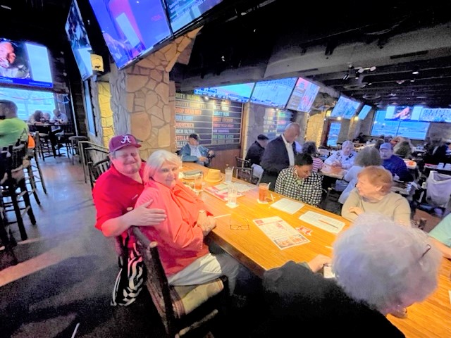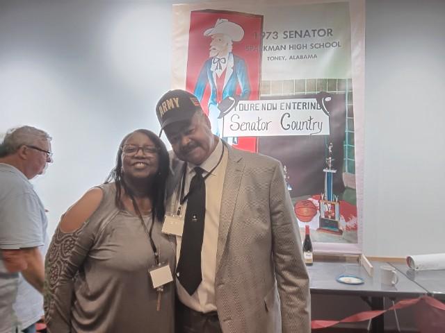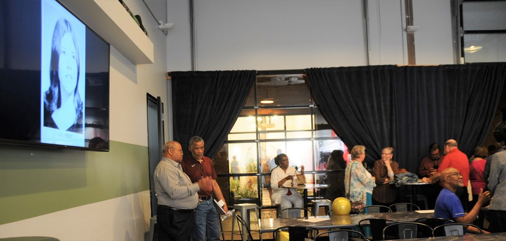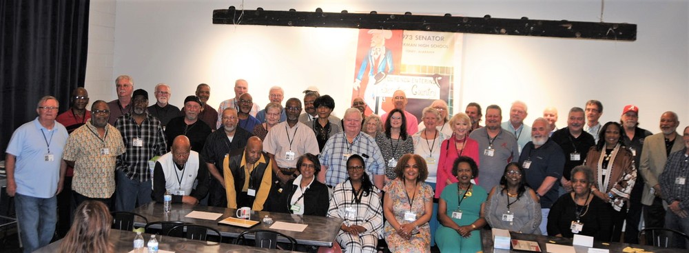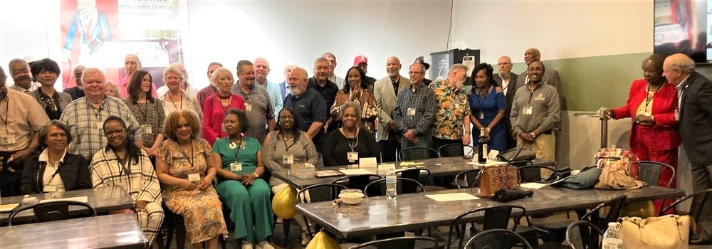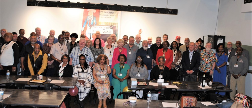 Below is a collage of photos from Reunion activities including: 1) The Sparkman High School Tour (Harvest) led by the Assistant Principal Scott McMickin (in red on right side) and Principal Chris Shaw (in black on left side). Sparkman HS today is amazing with so many activities, basketball, football, soccer, huge band (they just finished band tryouts for next year), amazing photo lab, track team, golf team, and even a female wrestling team! 2) The Ice Breaker was at Twin Peaks restaurant in Huntsville. and 3) The Reunion at the Stovehouse venue in Huntsville. The Reunion was a huge success with a larger than expected number of classmates who came to celebrate and meet old friends. Most had spouses accompanying them and with so many people it was a noisy and awesome crowd!